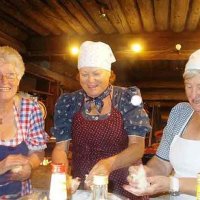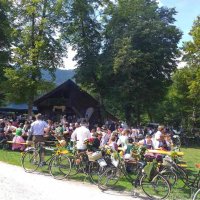 Schon der erste Zwischenstopp der knapp 500 Radler beim Holzknechtmuseum ist ein richtiges Highlight, werden sie doch dort von den fleißigen Mitarbeitern der Goldhauben- und Kopftuchgruppe mit frischen original Goiserer Holzknechtnocka und anderen Köstlichkeiten verwöhnt.